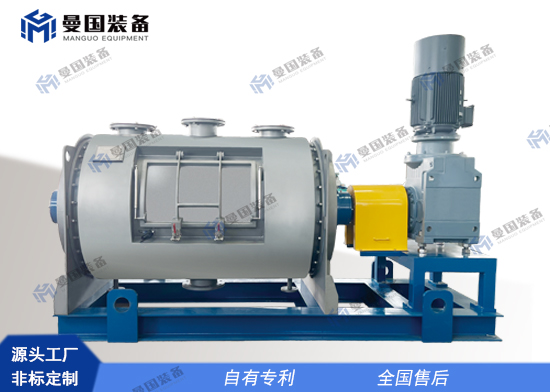 干燥機筒體設(shè)置夾套和保溫,當含一定水分的物料進入設(shè)備后,設(shè)備動部件運轉(zhuǎn)帶動主軸上安裝的多組錯位犁刀攪拌器以及筒體兩側(cè)板位置設(shè)置的旋轉(zhuǎn)刮板運轉(zhuǎn),使筒內(nèi)物料產(chǎn)生不間斷漩渦離心力,不斷重疊翻轉(zhuǎn),同時在結(jié)構(gòu)上避免攪拌死角問題。查看更多 + -